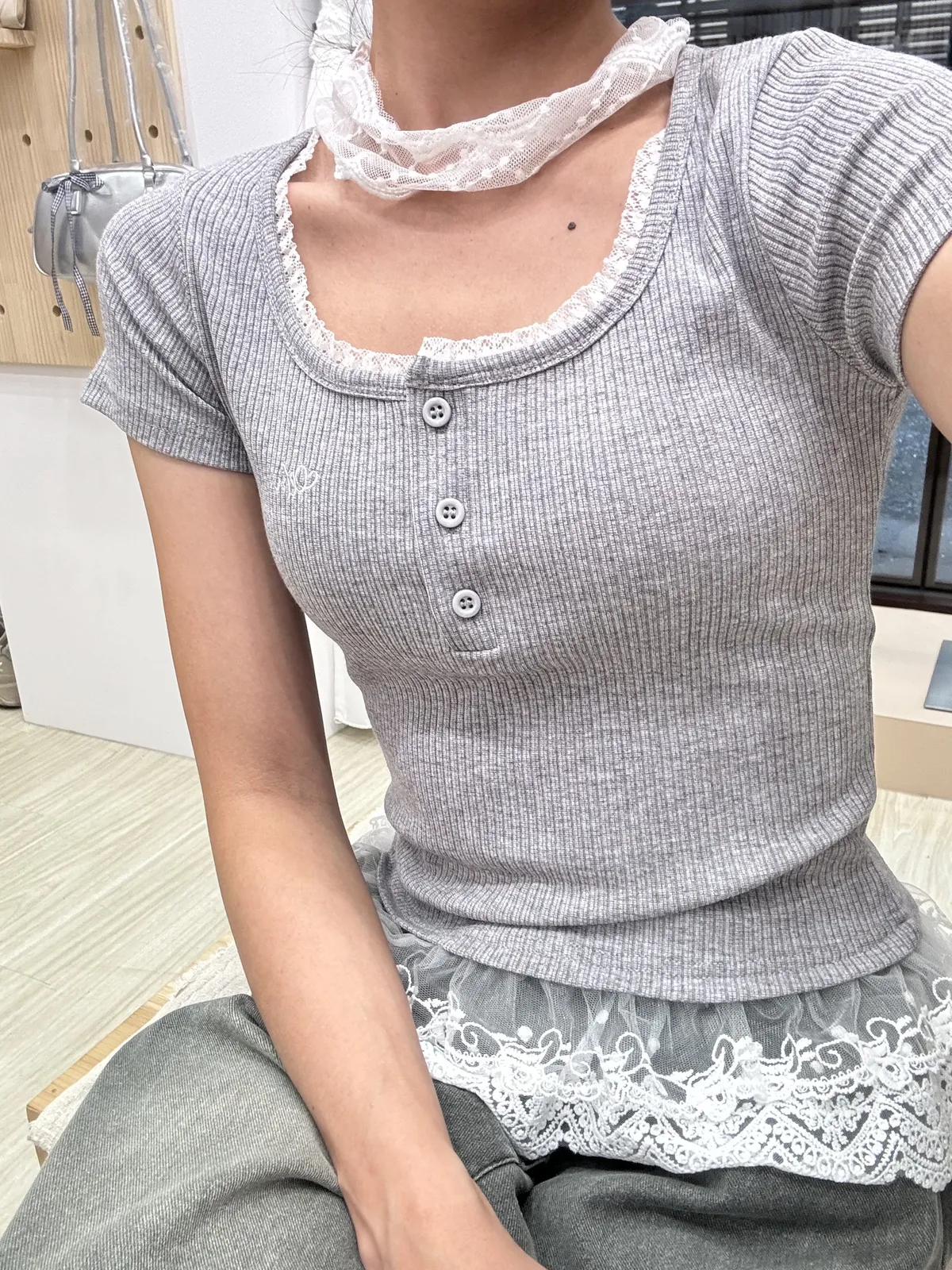 LS蕾絲腰身上衣